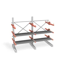 Мощный и удобный стеллаж для хранения длинномерных грузов — балок, труб, профилей, элементов конструкций. Каждая пара консолей выдерживает нагрузку до 1400 кг. Конструкция позволяет загружать груз как с двух сторон. Удобный фронтальный доступ к грузу для персонала и техники. На консоли можно установить настил для хранения более коротких грузов и ограничитель, чтобы груз не скатился.