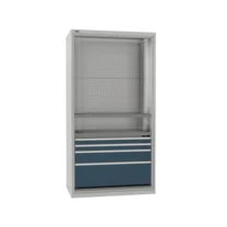 Инструментальный сборно-разборный шкаф. Укомплектован оцинкованной полкой, экраном, четырьмя ящиками разной высоты.