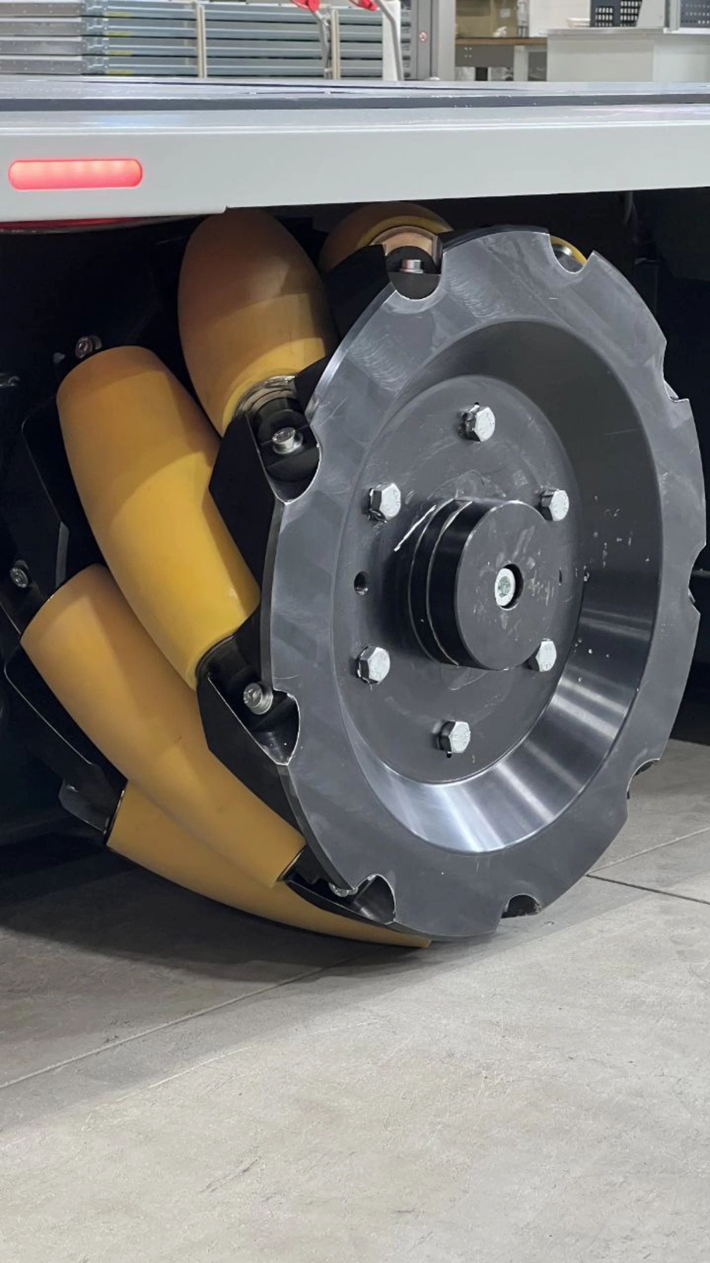 - Маневренность: может двигаться не только вперед, но и боком, а также по диагонали, не меняя ракурса. Все колеса с независимой подвеской — могут отрабатывать неровности пола и уклоны, обеспечивая плотный контакт с полом. Колеса собственной разработки и производства.